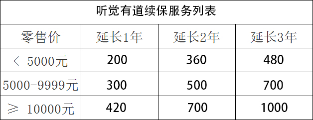 所以,根據(jù)用戶朋友的需求,聽覺有道提供付費(fèi)延長(zhǎng)保修期的服務(wù)。