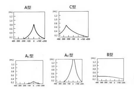 鼓室聲導抗就是通過對鼓膜外側聲能傳遞過程的變化的測量,了解中耳功能的狀態。鼓室聲導抗不僅可以診斷中耳是否存在病變,而且由于不同中耳病變對聲音由中耳傳入內耳方式的影響不同,還可以鑒別不同的中耳病變。鼓室聲導抗的峰壓位置、幅度以及整體的形態與中耳的病變密切相關,因此,鼓室導抗圖可分為三種類型: