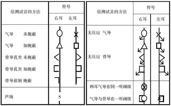 橫坐標代表頻率,以倍頻程為單位分隔——請記住倍頻程的概念,它指兩個頻率間的間隔,高頻是相鄰低頻的兩倍;縱坐標代表強度。右耳氣導用紅色“○”標記,左耳用藍色“×” 標記,閾值就是頻率與強度的交叉點位置。比如某人左耳在250Hz處的聽閾是30dBHL,則在250Hz這一軸線上30dB HL中點劃一藍叉。30dB HL是聽閾,正常人的聽閾是-10dB HL~25dB HL,也就是說,這個人的聽力損失(也可稱做聽敏度的下降)只有5dB HL。</p><p> </p><center><img alt="" src="/upfiles/201906100159589704.png" width="600" height="373" /></center><p></p><p style="text-align: center;">國家統一聽力標記符號</p><p> 用聽力圖表示聽閾級時,應采用上表所給符號,對氣導相鄰點用直線連接,骨導用虛線連接。如在聽力計最大輸出級仍無反應,可在相應符號處垂直向下畫一箭頭,或在符號的下外角與垂直方向約成45o角向下畫一箭頭(即左耳符號箭頭向右,右耳符號箭頭向左)。無反應的符號應記在聽力圖上代表聽力計最大輸出的聽力級處。如用彩色筆記錄,右耳符號和連線為紅色,左耳符號與連線為藍色。從篩選測聽法得出的結果應清楚地照此表示出來。</p><p> 更多詳情請登錄聽覺有道助聽器www.cqzzjd.cn</p>" />